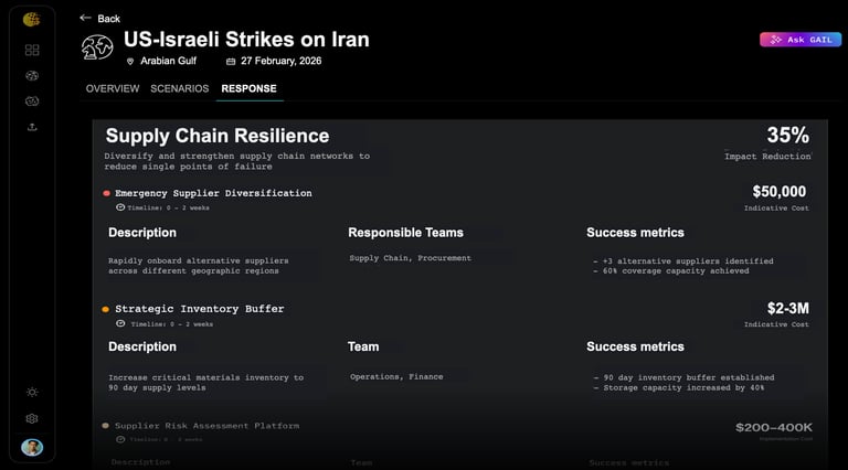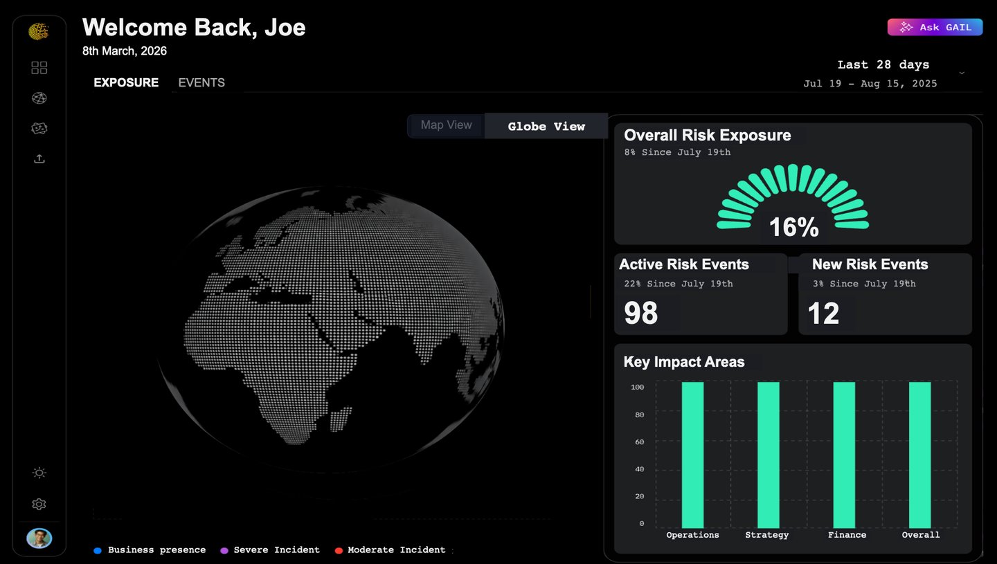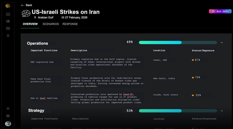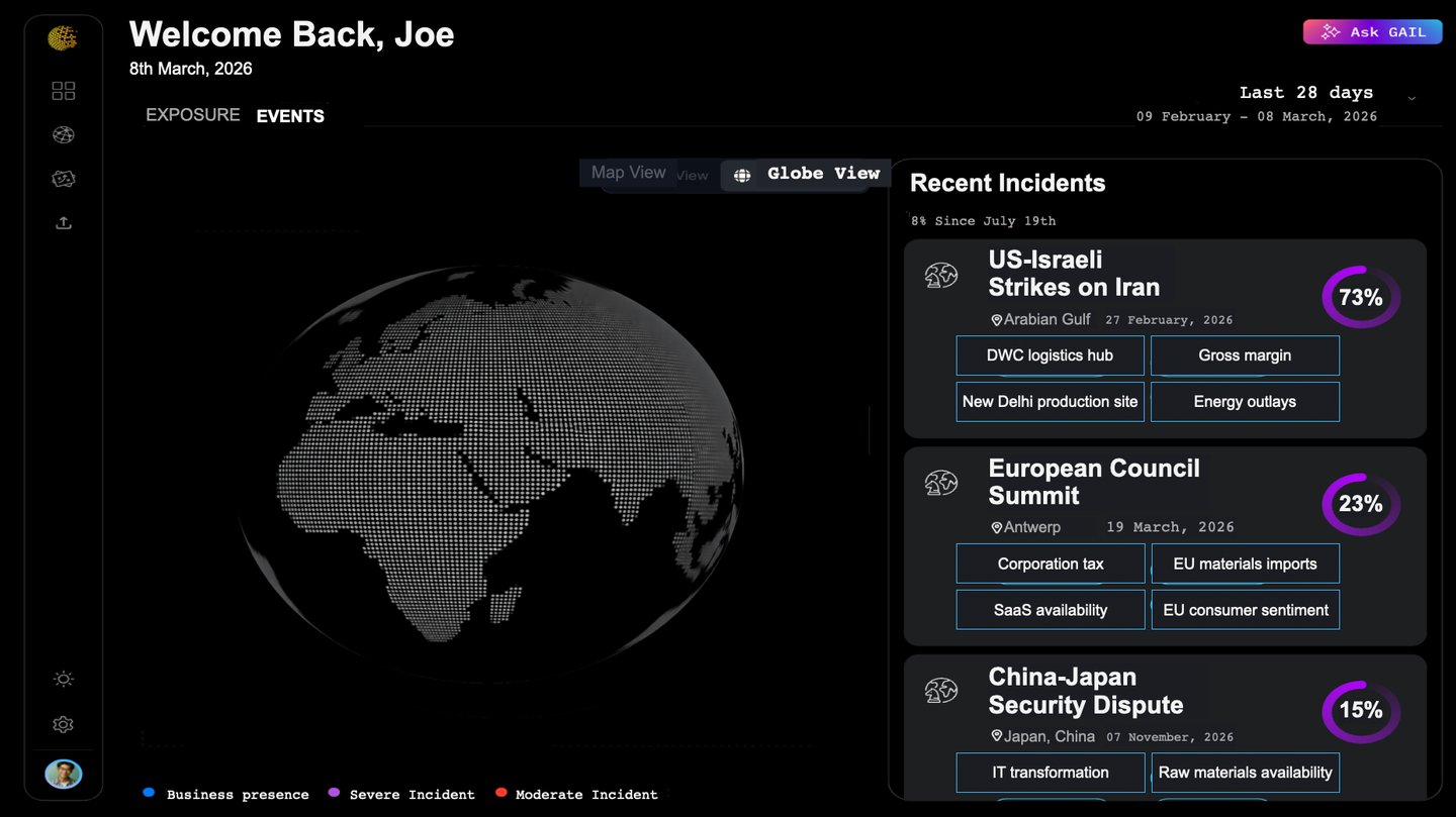 GAIL translates geopolitical events into tangible consequences for your business, allowing you to make better-informed decisions.
